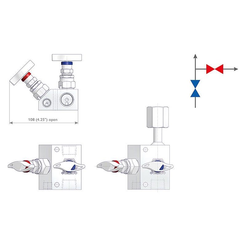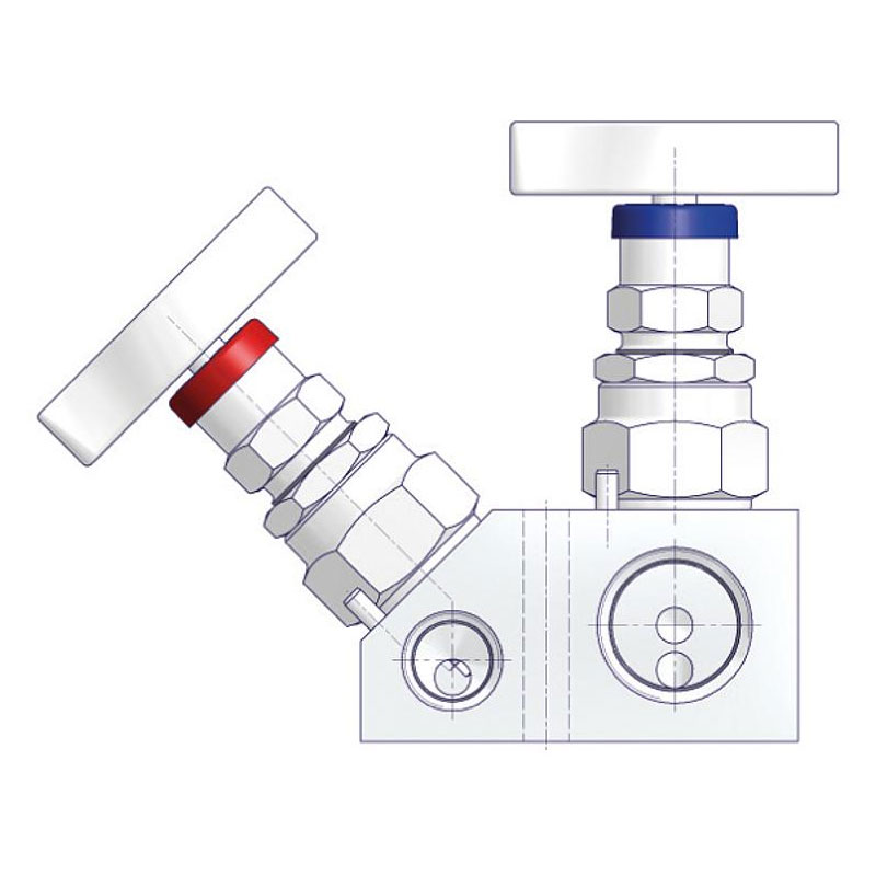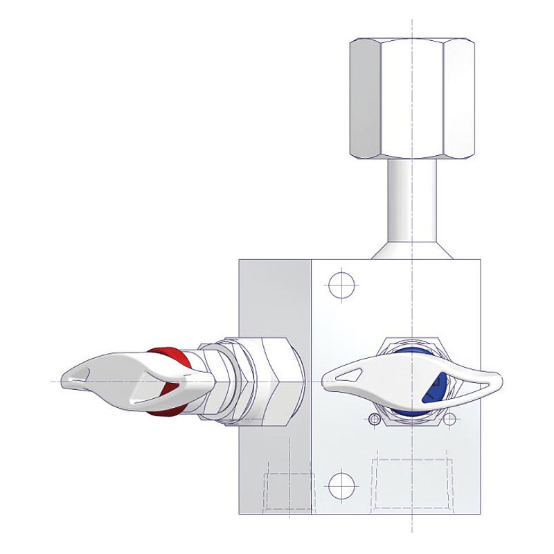 2-fach Ventilblöcke Y-Form von AS-Schneider sind zur Montage an Manometer, Druckmessumformer und Druckschalter vorgesehen.