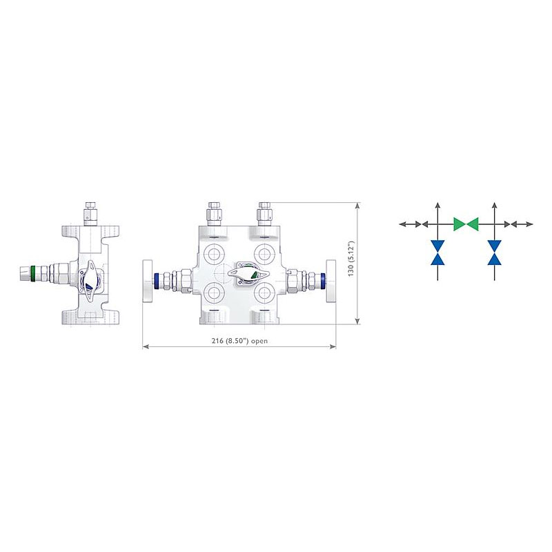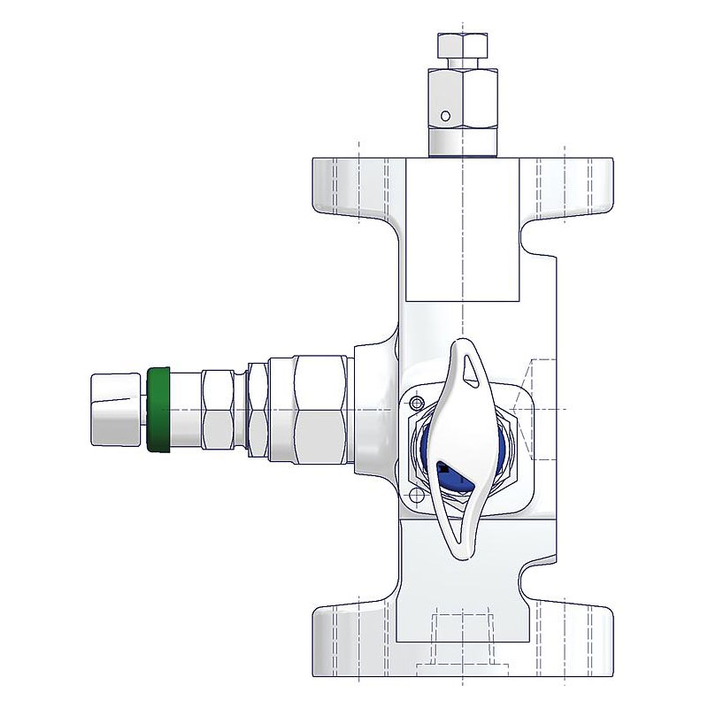 Integrierte 3-fach Ventilblöcke – Traditional-Ausführung von AS-Schneider sind zur Direktmontage an Rosemount 2051/3051 CoplanarTM Druckmessumformer vorgesehen. Die Entlüftungsanschlüsse 1/4 NPT Innengewinde werden standardmäßig mit montiert Entlüftungsventilen geliefert. Zubehörsätze für die Montage der Ovalflansche an den Eingang der Ventilblöcke sind lieferbar.