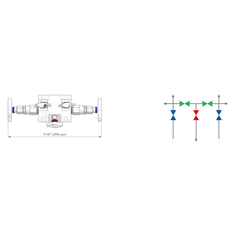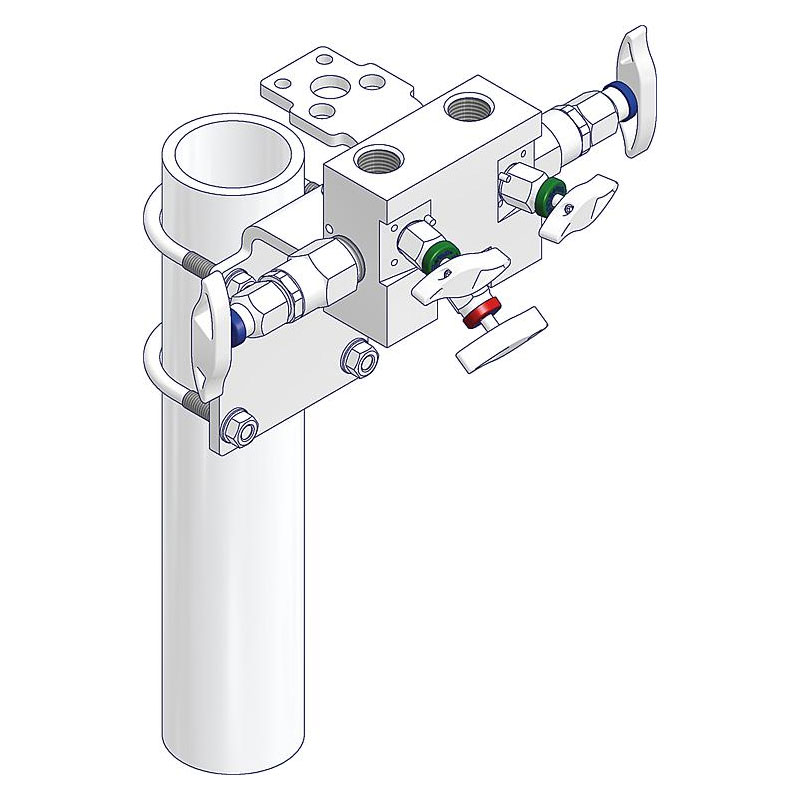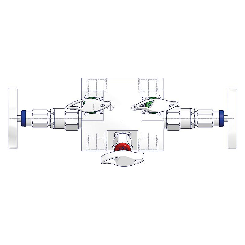 Ventilblöcke Typ R5A/R5S mit Weichsitz von AS-Schneider sind zum Einbau in die Wirkdruckleitung vorgesehen. Die Anschlüsse an Eingang und Ausgang des Ventilblocks sind standardmäßig 1/2 NPT Innengewinde. Der Standard-Entlüftungsanschluss ist 1/4 NPT Innengewinde und wird mit einem Insektenschutzstopfen standardmäßig geliefert. Die Prüfanschlüsse 1/4 NPT werden werkseitig mit einer montierten Verschlussschraube ausgeliefert.