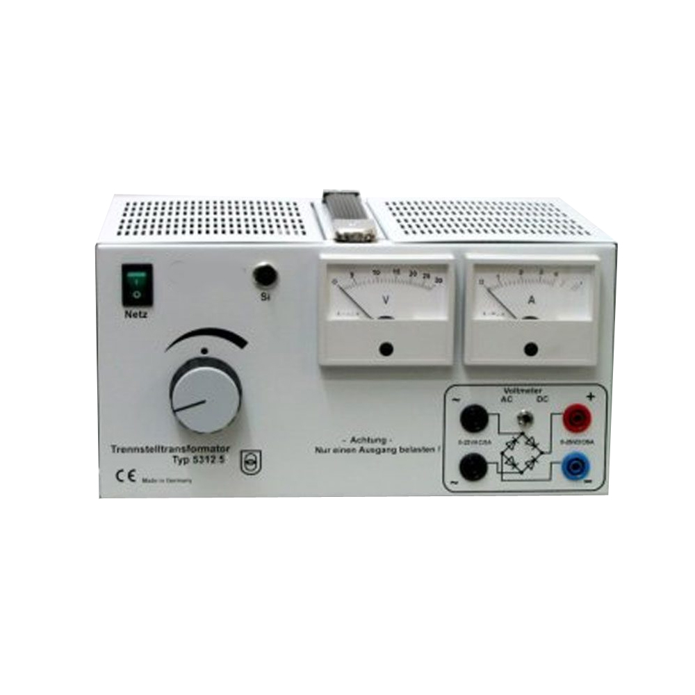 Geräte-Eigenschaften | Trennstelltrafo mit integrierten Brückengleichrichter, mit Tragegriff, thermischer Schutzschalter an Front |