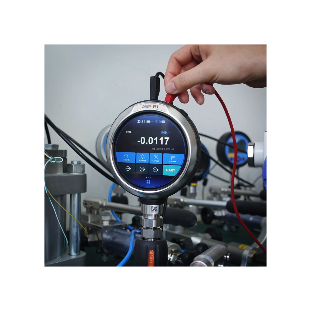 Mit der vollständigen Unterstützung von HART-Kommunikationsprotokollen bieten die erweiterten digitalen Druckkalibratoren ADT673 eine Druckkalibrierungslösung für Transmitter für einen großen Druckbereich. Der ADT673 ist ein sehr handliches Gerät, kann den Druck mit einem eingebauten Drucksensor präzise messen sowie den von einem Transmitter erzeugten Strom oder mV lesen. Er kann sogar eine Versorgungsspannung (Schleifenstrom) liefern, um Sensoren oder Transmitter während der Kalibrierung zu versorgen.