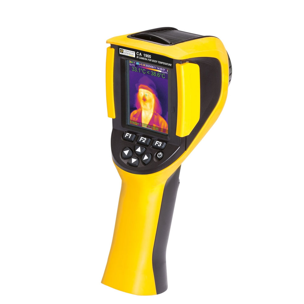 Durch das Stativgewinde im Kameragriff lässt sich die Kamera sehr einfach und dauerhaft an einem bestimmten Ort installiere, wie z.B. an einem Werkseingang und durch den Messabstand von 1,5 Meter zwischen Kamera-Bediener und zu prüfender Person besteht praktisch kein Infektionsrisiko.