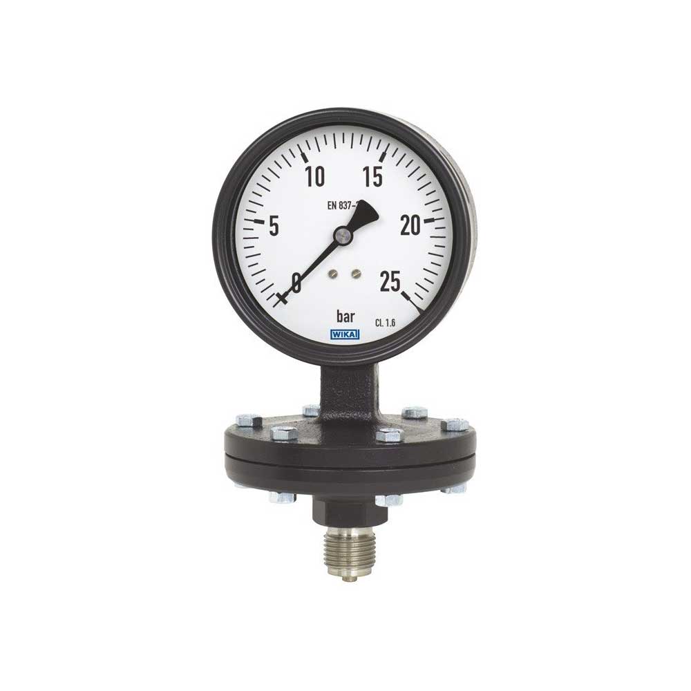 The diaphragm pressure gauges are manufactured in accordance with EN 837-3. The robust design is particularly suitable for applications in machine building, plant construction and in the water and wastewater industry.