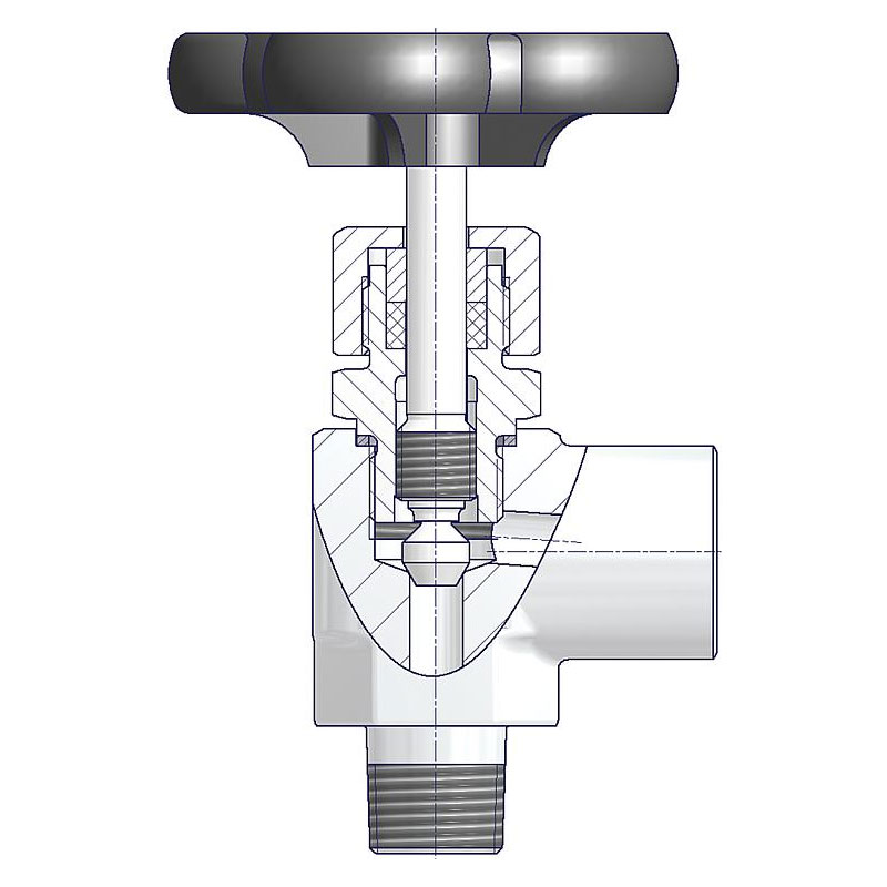 Eckventile Typ S360 von AS-Schneider sind mit einer Vielzahl von Optionen erhältlich. Dieser Ventiltyp hat standardmäßig innenliegendes Spindelgewinde, einen integrierten Ventilsitz und einen eingebördelten Ventilkegel. Das Ventilgehäuse ist geschmiedet.