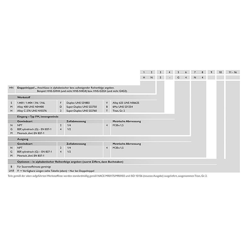 M 20 x 1.5 Male 1/2 NPT Male 50 1.4404 HNS-M4N4
