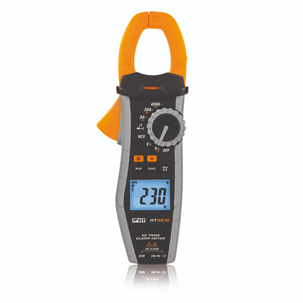 Die Stromzange HT3010 kann Wechselstrom bis 400 A und Wechselspannung bis 600 V, Widerstand, Durchgang und Diodenprüfung messen.