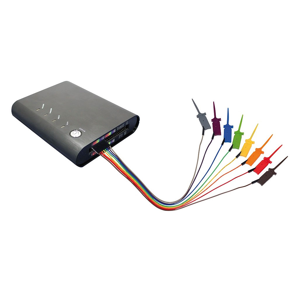 This 16-channel USB logic analyser probe is proposed as an accessory for the MTX1052/MTX1054C SCOPEin@BOX models to allow frame decoding and analysis. The clock rate ranges from 100 Hz to 200 MHz with the possibility of zooming.