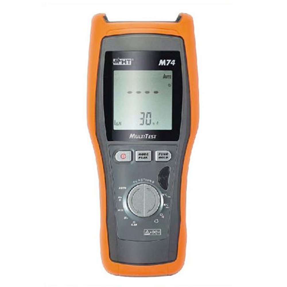 M74 measures Overall earth resistance, tripping time of RCDs type AC, Insulation and Continuity of earth and equipotential conductors according to the laws in force in private electric installations.