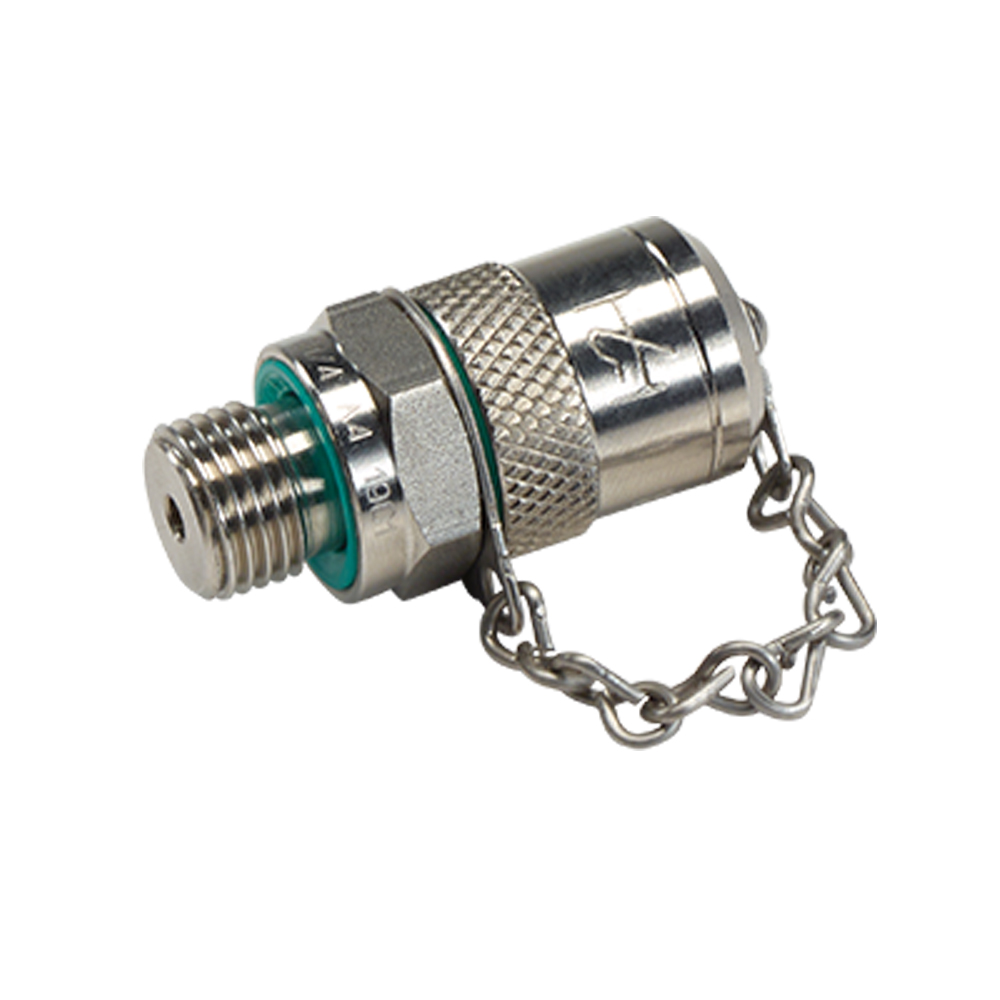 Der Minimess® Testpunkt 1615 wurde vorwiegend für wehrtechnische Anwendungen entwickelt um die Drucküberwachung, Entlüftung, Kontrolle, Befüllung, Entleerung und Probeentnahme des Hydrauliksystems im laufenden Betrieb zu ermöglichen. Er bietet die Möglichkeit des einfachen und schnellen Anschlusses von Mess-, Prüf- oder Schaltgeräten. Gewährleistet 100% leckagefreies Kuppeln unter Systemdruck durch die einmalige Elastomer Weichabdichtungstechnik. Angebotene Dichtungsmaterialien sind NBR, FKM und EPDM. Anschlußgewinde der Schraubreihe 1615 = M16 x 1,5. Hinzu kommt eine sehr große Variantenvielfalt des Einschraubgewindes durch verschiedenen metrischen und internationalen Gewindegrößen. Erhältlich in den Materialien Automatenstahl und Edelstahl. Gerne fertigen wir auch kundenspezifische Sonderlösungen nach Ihren Anforderungen. Sprechen Sie uns einfach an!