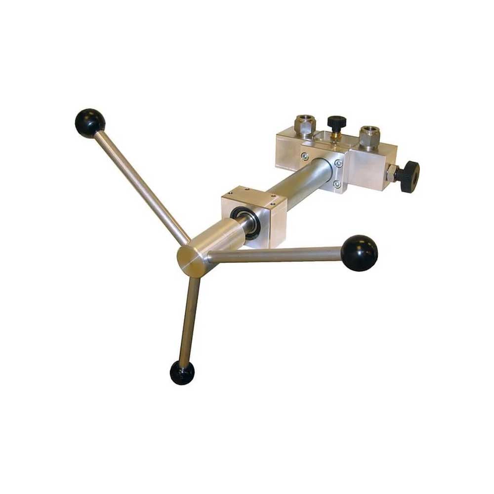 The hand spindle pumps models CPP1000-M and CPP1000-L have been designed primarily for the testing and calibration of pressure measuring instruments with small volumes. Test items and reference instruments with larger volumes should either be pre-filled outside the test pump or also simply and conveniently filled directly from the hand spindle pump, using the shut-off valves available as an accessory for the test connections.