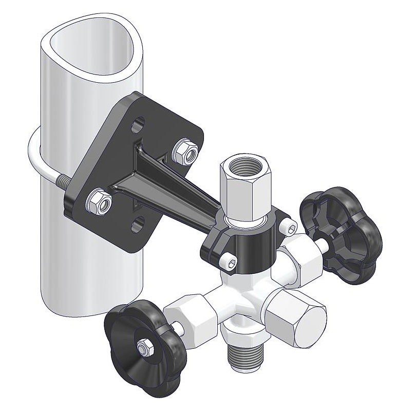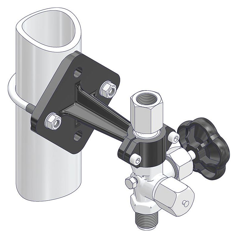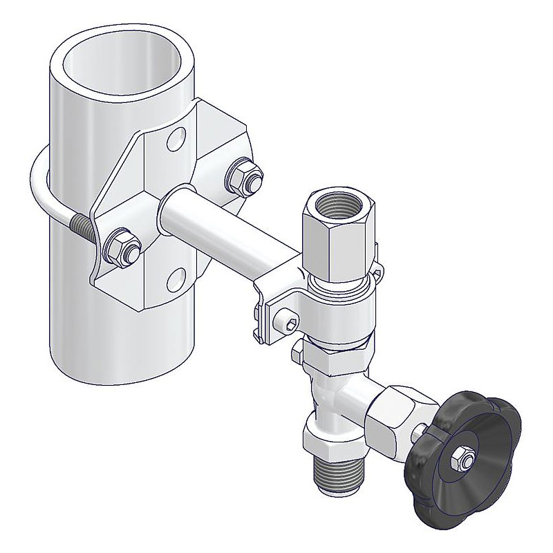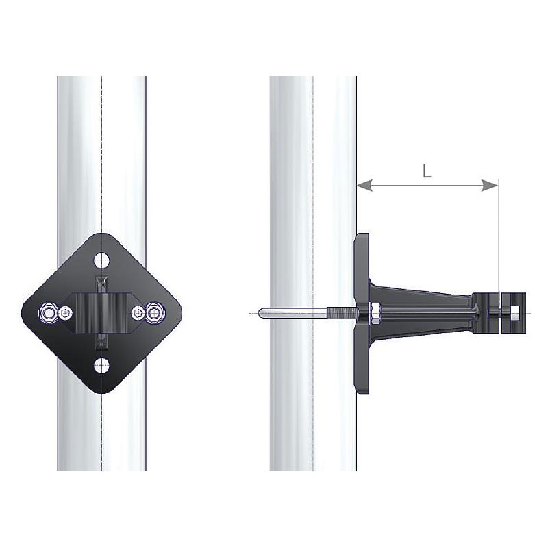 Mounting kit for 2" pipe mounting made of carbon steel with galvanized surface.
