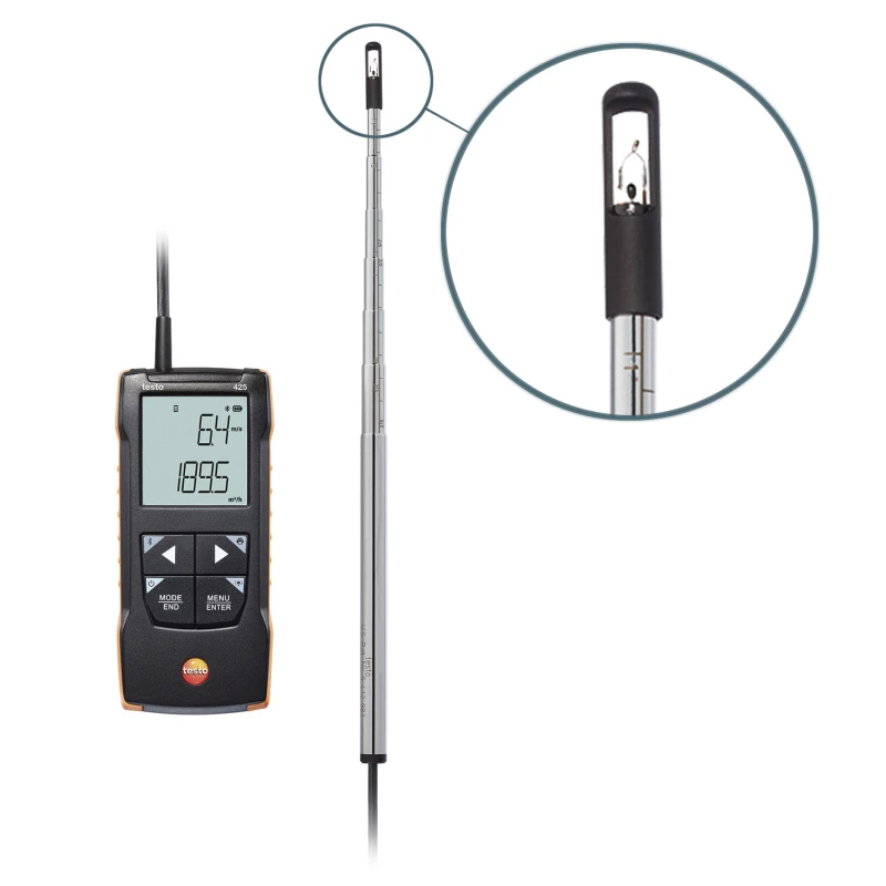 - testo 425 – Thermisches Hitzdraht-Anemometer mit App-Anbindung und fest angeschlossenem Teleskop (max. 820 mm)