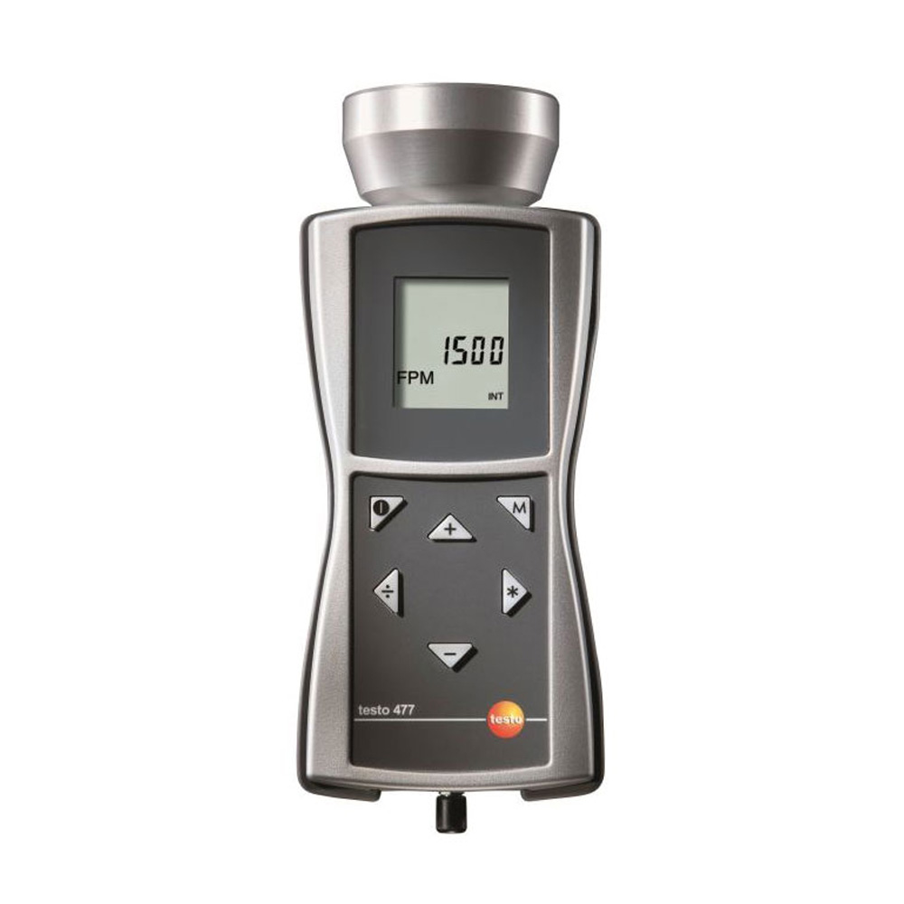 testo 477 LED stroboscope, carry case, trigger signal plug, calibration protocol, batteries.