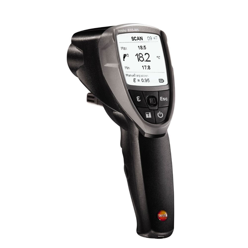 - 50:1-Optik: Auch auf große Entfernung erhalten Sie in der Oberflächen-Temperaturmessung noch erstklassige Ergebnisse (5 m Entfernung = 10 cm Messfleck)