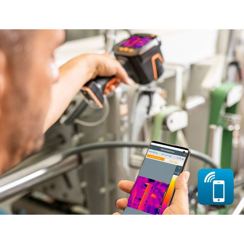 - testo Thermography App: Mit der App wird Ihr Smartphone/Tablet zum zweiten Display und zur Fernbedienung Ihrer Wärmebildkamera. Vor Ort können Sie schnell Berichte erstellen, versenden oder speichern