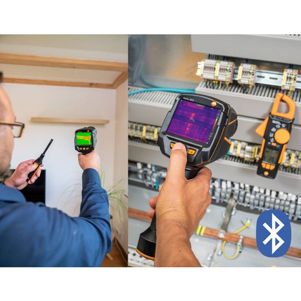 - Vernetzt: Kabellose Übertragung von Messwerten der Testo Stromzange direkt ins Wärmebild – so können Sie z.B. bei der Überprüfung von Schaltschränken den Lastzustand direkt im Wärmebild dokumentieren und den Zustand der Anlage zuverlässig beurteilen