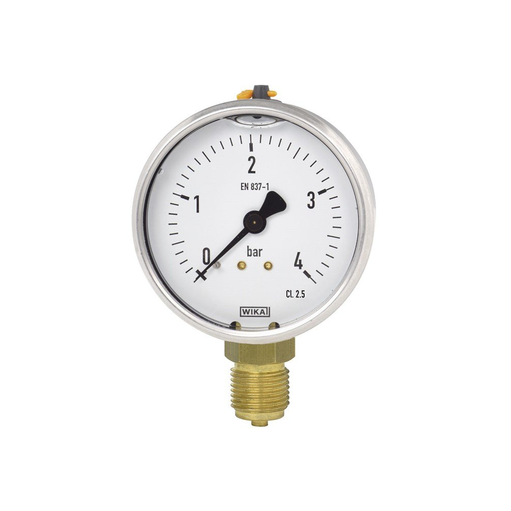 WIKA fertigt und qualifiziert das Manometer nach den Normen EN 837-1 und ASME B40.100. Dieses Gerät hat als Sicherheitsfunktion eine Entlastungsöffnung. Im Fehlerfall kann dort Überdruck entweichen.