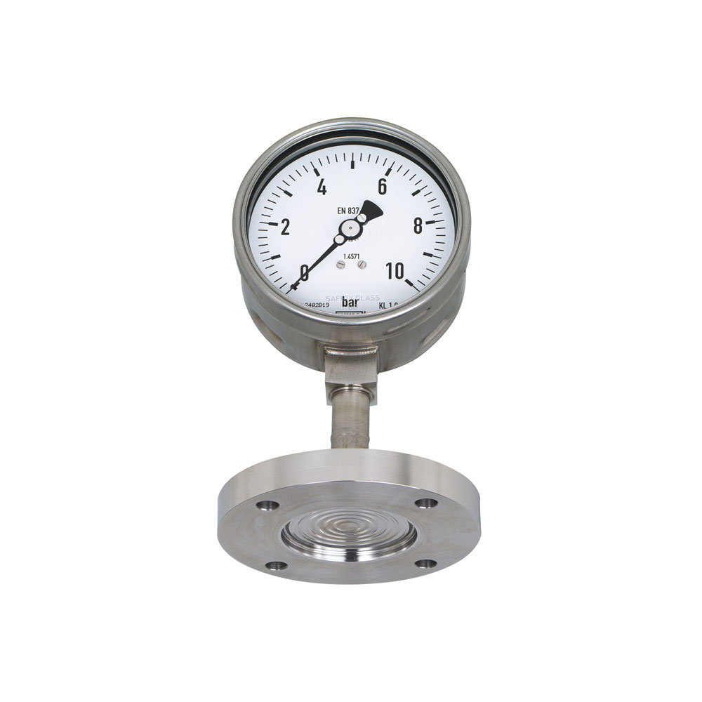 Druckmittler werden zum Schutz des Druckmessgerätes vor aggressiven, anhaftenden, kristallisierenden, korrosiven, hochviskosen, umweltschädlichen oder giftigen Messstoffen angewendet. Eine aus geeignetem Werkstoff gefertigte Membrane übernimmt die Trennung zum Messstoff. Durch Messgerätekombinationen mit Druckmittlern lassen sich damit schwierigste Messaufgaben realisieren.