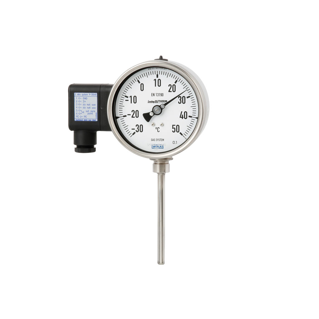 Der elektronische WIKA-Transmitter, integriert in das hochwertige mechanische Temperaturmessgerät, verbindet die Vorteile einer elektrischen Signalübertragung mit den Vorteilen einer mechanischen Anzeige vor Ort.
